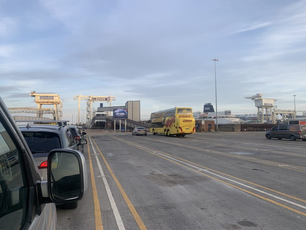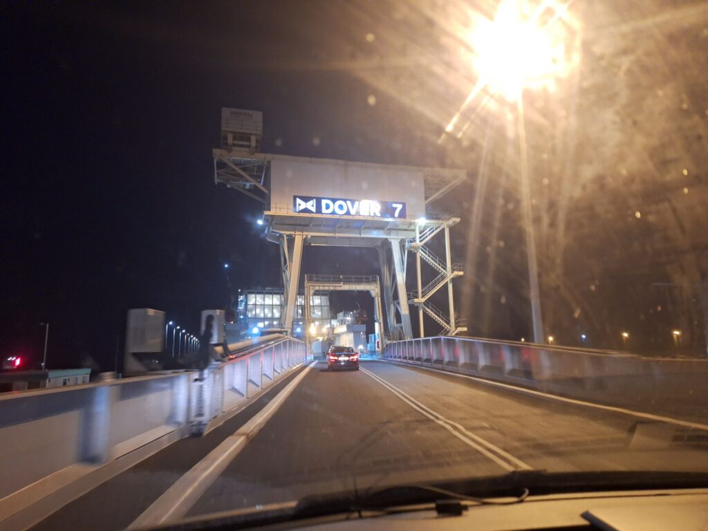 Der ursprüngliche Plan, eine Nacht in der Nähe von Dover zu verbringen, wurde verworfen. Wir dachten uns, wenn wir schon in Dover sind, probieren wir auch gleich ob wir eine frühere Fähre bekommen. Am Fährhafen angekommen wurden wir zuerst von den französischen Behörden kontrolliert. nur die Reisepässe wurden benötigt und dann ging’s weiter. Wir wurden von den britische Behörden wieder einmal in den Röntgentunnel geschickt. Diesmal aber eine neue Prozedur. Wir wurden gefragt ob wir irgendwelche Waffen oder illegalen Substanzen dabeihaben und Benji musste den Motor abstellen und die Motorhaube öffnen. Abschließend wurde dann mit Spiegel und Taschenlampen die Unterseite des Autos durchleuchtet. Natürlich haben sie nichts gefunden und wir konnten weiter zum Irish Ferries Check In Schalter fahren. Die Fähre um 22:00 hat noch Platz für uns und wir bekamen das Ticket. In der Schlange warteten wir dann zwei Stunden auf die Fähre, die verspätet war …