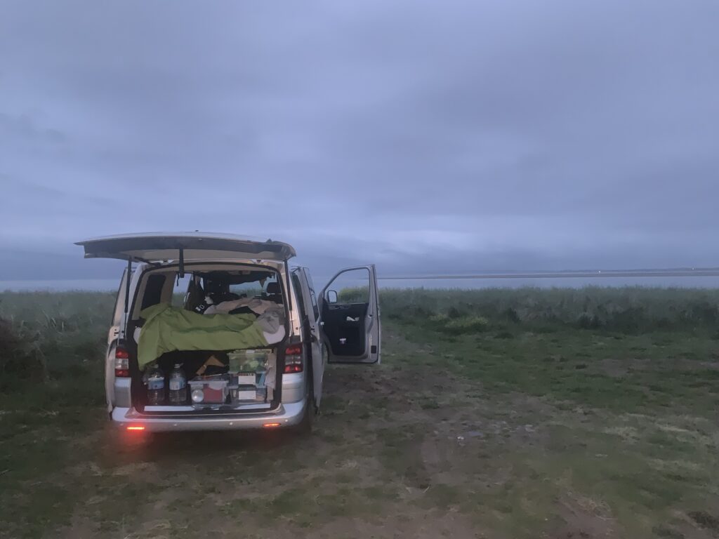 Am Rande eines Golfplatzes an der Küste, fanden wir einen tollen Stellplatz ohne Midges und mit Meerblick.