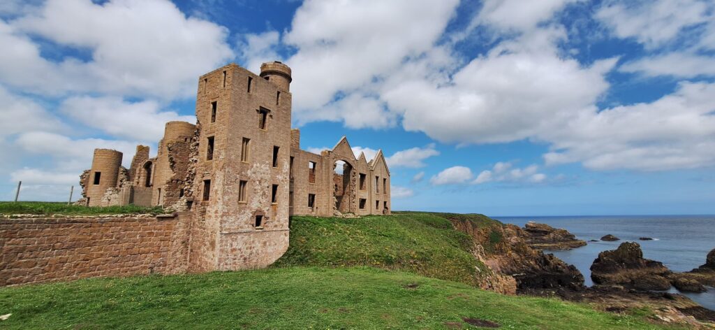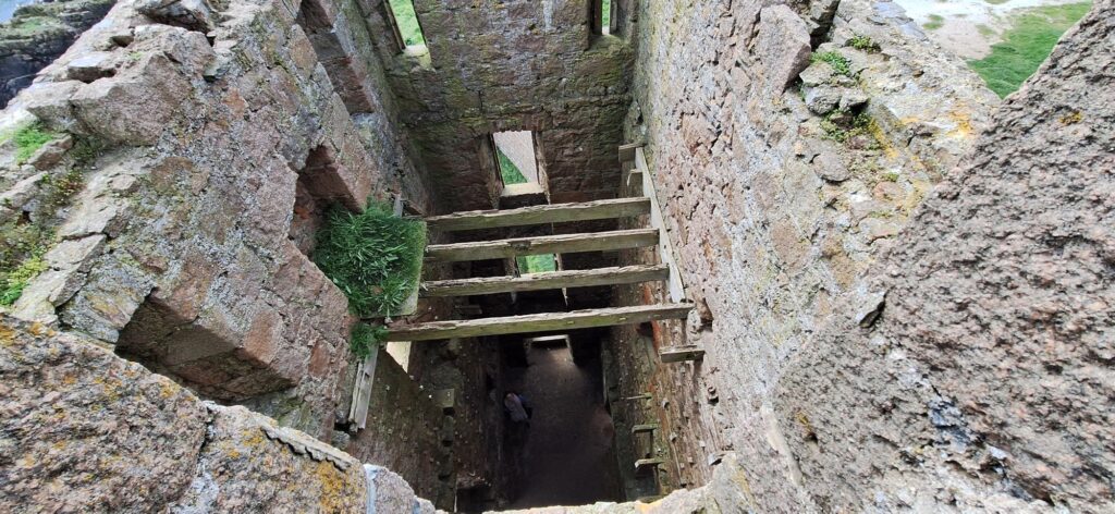 Unser erster Stop war New Slains Castle. Die im 16. Jahrhundert, vom Earl of Erroll, erbaute Burg, ist heute eine beachtliche Ruine, die kostenlos und auf eigene Faust, erkundet werden kann. Es ist sogar möglich, die Spitze des Turms, über die Enge Wendeltreppe zu erklimmen. Nichts für Menschen mit Höhenangst…