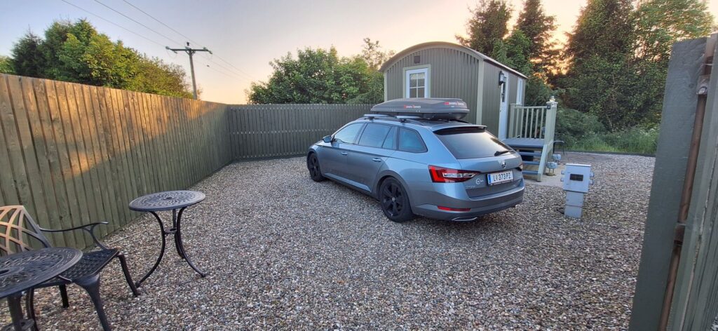 Unterwegs buchten wir uns einen „Wohnwagen“ für zwei Nächte am Foresterseat Glamping + Caravan Park. Für 200 Pfund nicht ganz günstig, jedoch war es uns das Wert für ein wenig Komfort (eigene Dusche, frisch überzogenes Bett, Kühlschrank, Ofen, usw.)